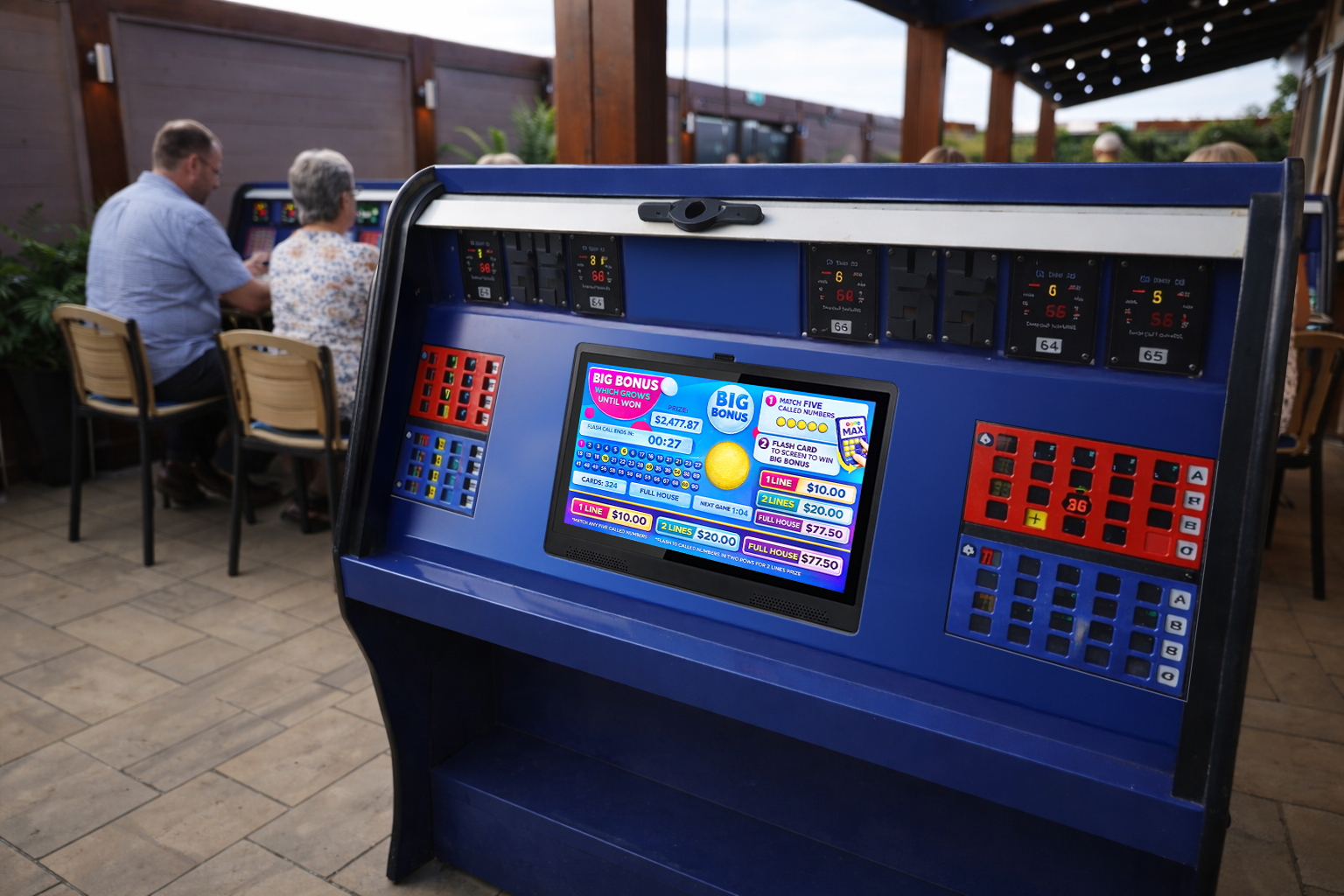 By introducing fixed outdoor bingo terminals, the customer has the opportunity to extend bingo play beyond the main hall and maximize the use of existing outdoor areas. Players can remain engaged in games for longer periods while enjoying the comfort and sociable atmosphere of the outdoor environment. This removes a common barrier to participation and supports increased dwell time.